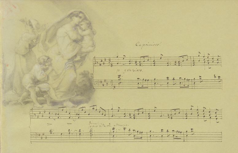 printemps, citant le choral « le Christ est ressuscité ». Avril, (à gauche la partition illustrée par Hensel) est un peu entre Schumann et Mendelssohn. Mai est bien plaisant, tandis que Juin m’a paru un peu fade. Juillet est curieusement très méditatif, façon choral. Août est charmant, comme du Schumann champêtre. Septembre est au bord de l’eau, donc tout en liquidité et en nostalgie. Octobre est plus sombre et riche en harmonies. Avec Novembre, on est plus vers le Chopin funèbre. Enfin, décembre est une sorte de clôture spirituelle, sauf : qu’il y a un postlude qui donne de regard ému sur l’entièreté du cycle.